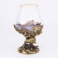 Сложное объемное литье из бронзы, в сочетании с декорированным богемским стеклом, делает эти бокалы не только презентабельными,