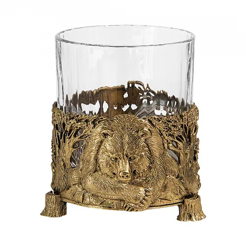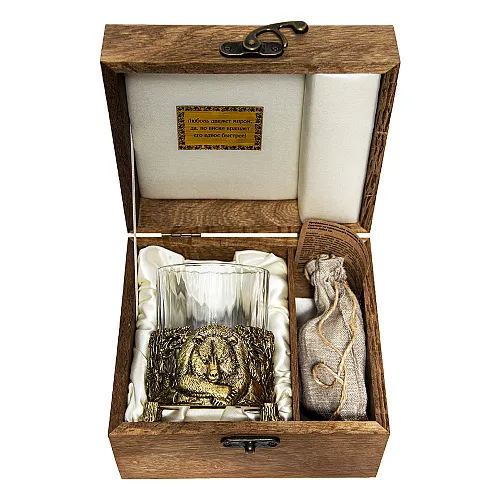 Бокал для виски "Медведь" с камнями в деревянном футляре