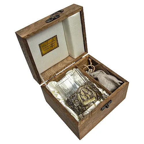 Бокал для виски "Лев" с камнями в деревянном футляре