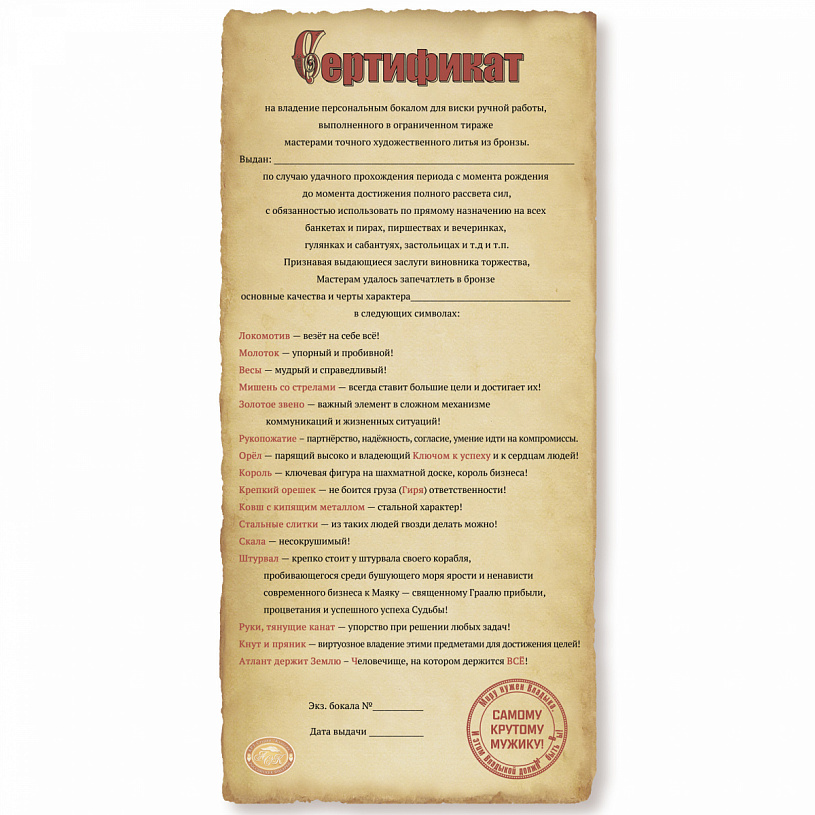 Размер бокала для виски: высота - 10 см, диаметр - 9 см.