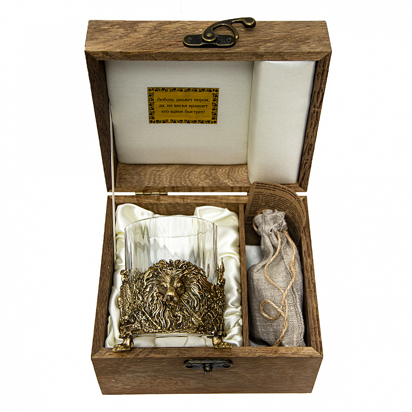Бокал для виски "Лев" с камнями в деревянном футляре