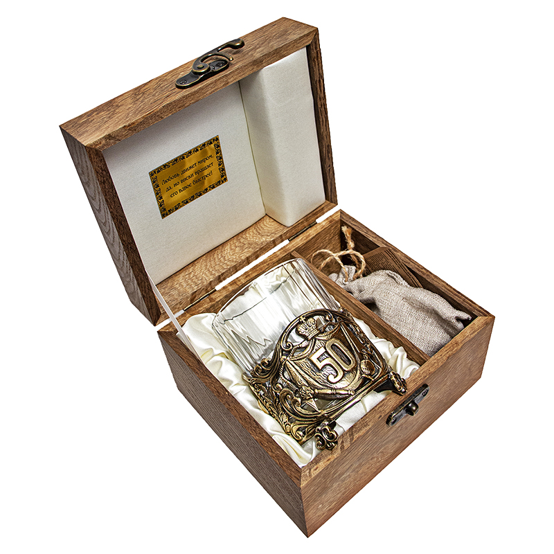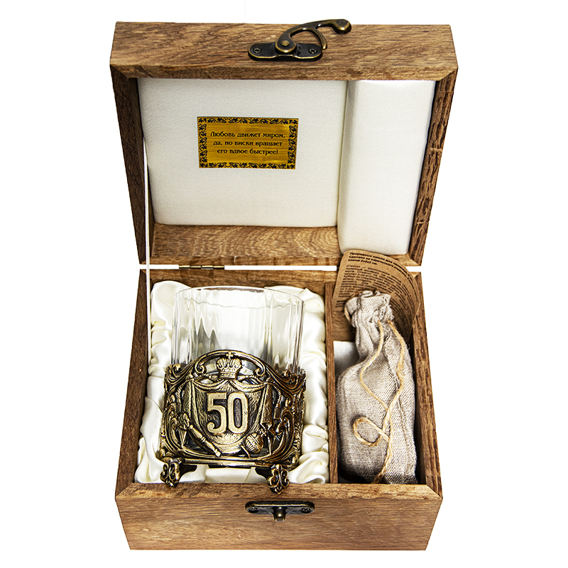 Бокал для виски "Юбилей, 50 лет" с камнями в деревянном футляре