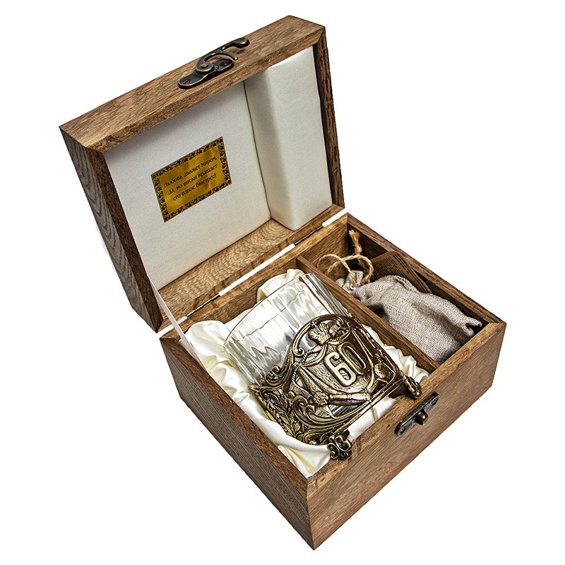 Бокал для виски "Юбилей, 60 лет" с камнями в деревянном футляре
