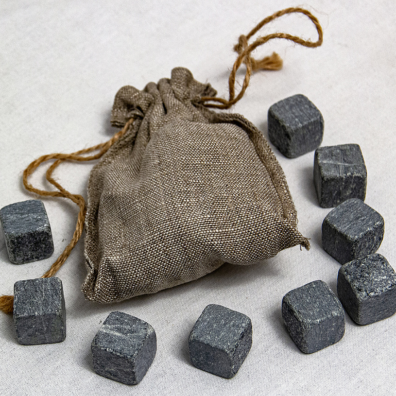 Природные камни из карельского стеатита для охлаждения напитка.