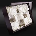 Материал футляра: плотный картон, дизайнерская бумага, бежевый шелк, ложемент из поролона.