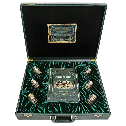 Подарочный набор книга в коже и 6 стопок "Рыбацкий" Л.П. Сабанеев