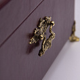 Материал ларца: дерево, обтянуто кожей «Небраска», бежевый шелк, ложемент из поролона, бронзовая фурнитура.