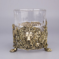 Декорация бронзой хрустального штофа венками победителя, ножками в виде орлов, объемным медальоном «Лев на щите» в стиле Фаберже и крышкой с регалиями царской власти, еще больше подчеркивает статусность подарка.