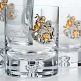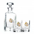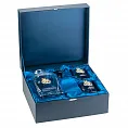 Набор для крепких напитков состоит из графина и 2 стаканов. Сосуды изготовлены из премиального стекла, и украшены серебром c эмалями. Сет упакован в подарочный футляр и транспортную коробку.