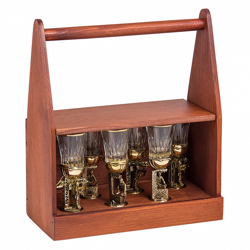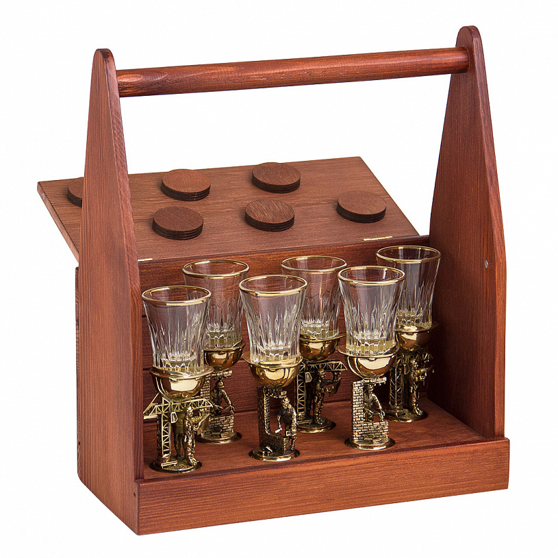 Стопки упакованы в стильный футляр - ящик для инструментов - из дерева!