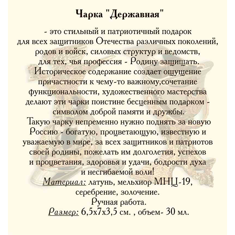 Чарка "Державная"- это стильный и патриотичный подарок для всех защитников Отечества различных поколений,