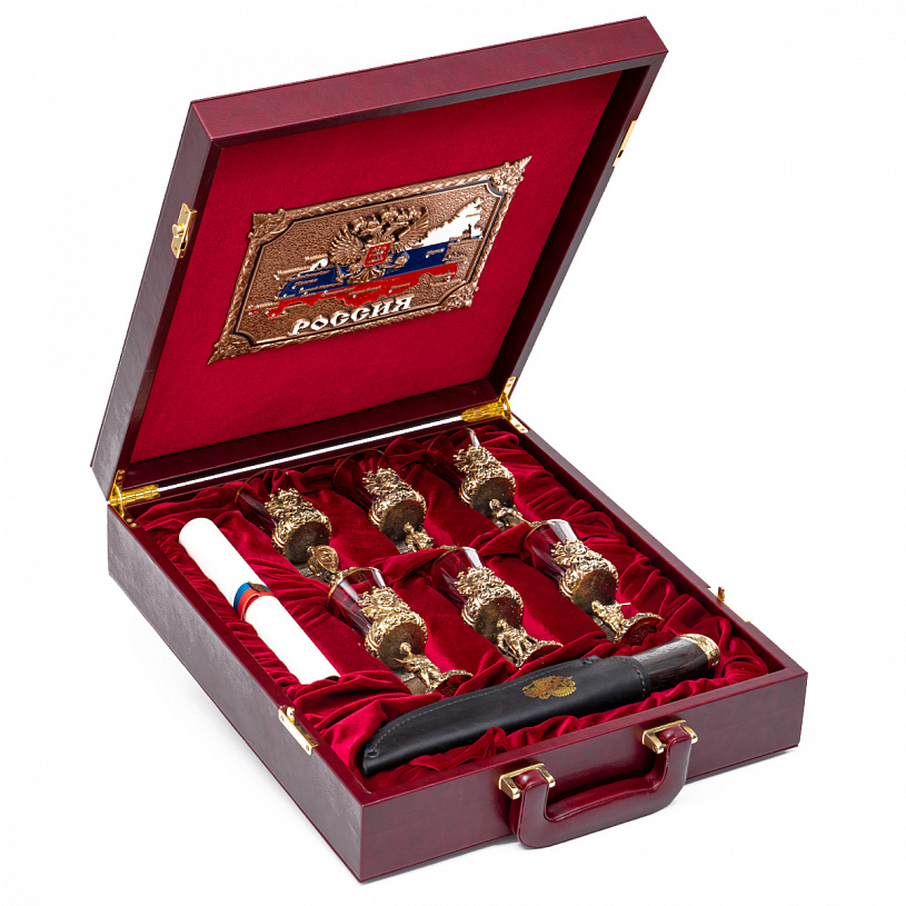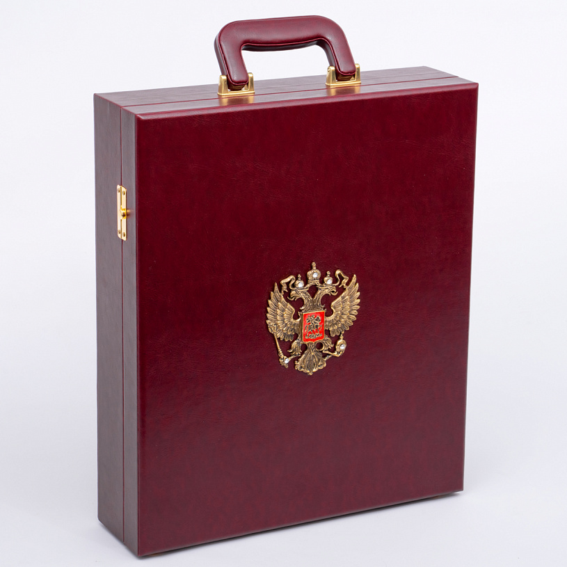 Латунная накладка «Герб РФ» со стразами на крышке.