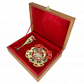 Изделие выполнено в технике Златоустовской гравюры на металле. Токарные работы, рисовка кистью, гравировка иглой по лаку, травление, гравировка резцом, полировка, никелирование, золочение.