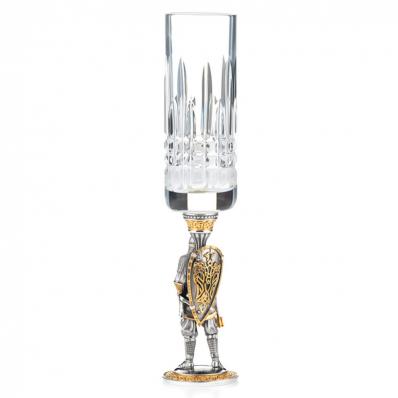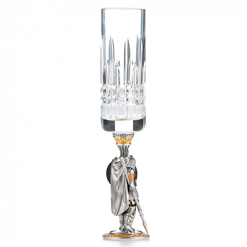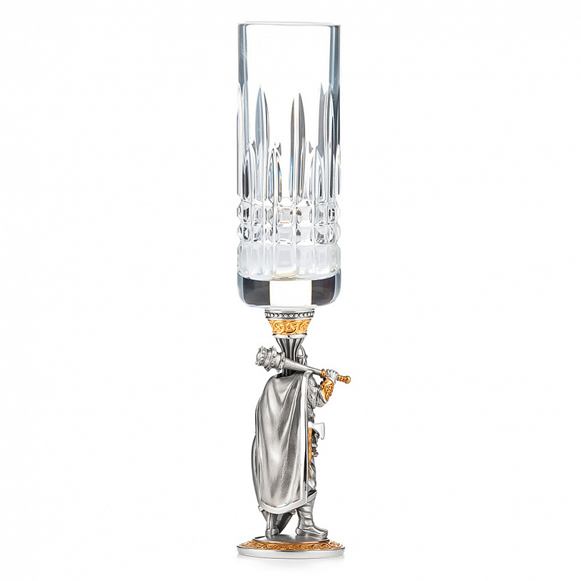Подарочный набор из трех массивных, серебряных с хрусталем, рюмок упакован в солидный футляр.