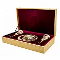 Изделие выполнено в технике Златоустовской гравюры на металле. Токарные работы, рисовка кистью, гравировка иглой по лаку, травление, гравировка резцом, полировка, никелирование, золочение.