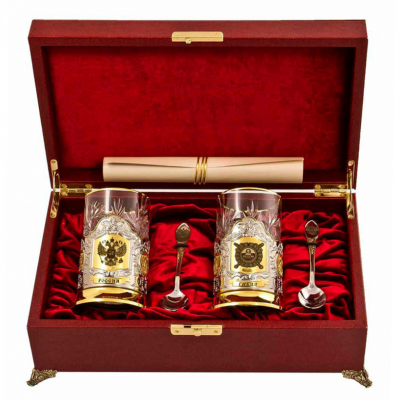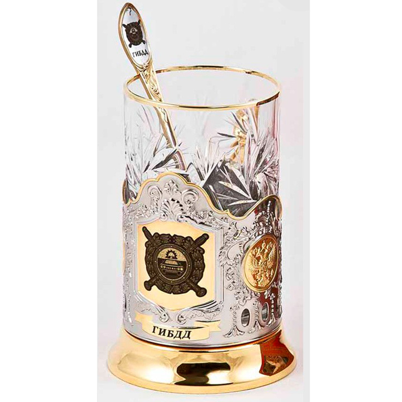 В комплекте: подстаканник ,хрустальный стакан, ложка, коробка.;