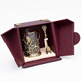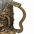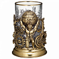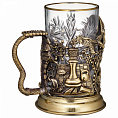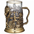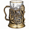 Материал: бронза, точное объемное литье, стакан - хрусталь. Высота - 13 см, диаметр - 9 см, ширина с ручкой - 13 см. Вес со стаканом - 0,9 кг.