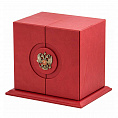 Футляр: кожа, дерево, бронзовая накладка. Размер - 215 х 165 х 175 мм.