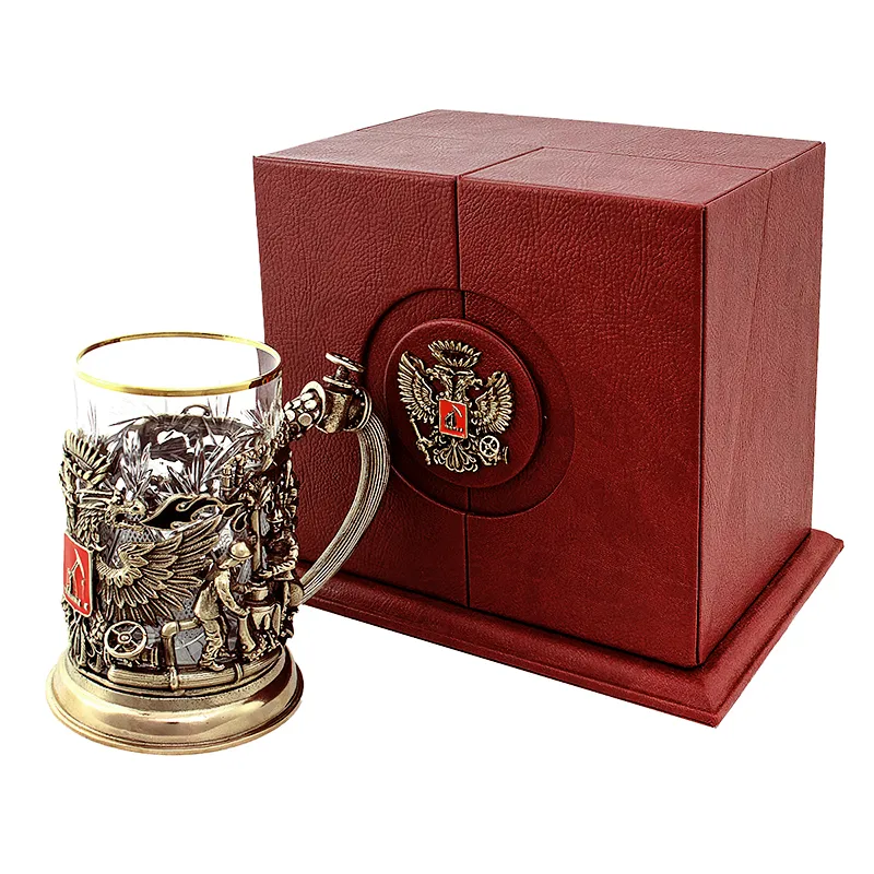 Футляр: кожа, дерево, бронзовая накладка. Размер - 215 х 165 х 175 мм.