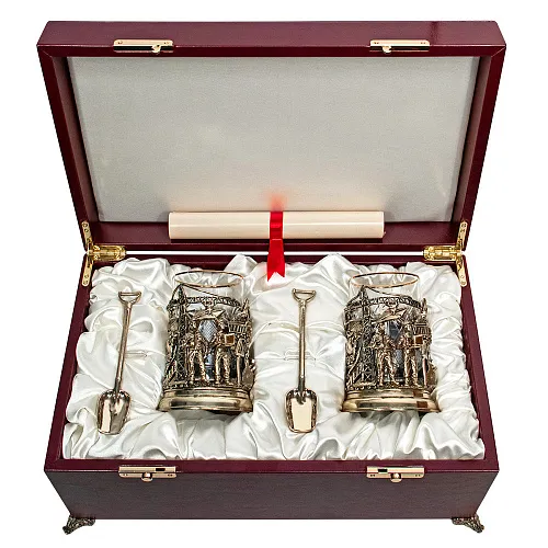 Набор для чая из двух подстаканников "Герб нефтяников и газовиков"