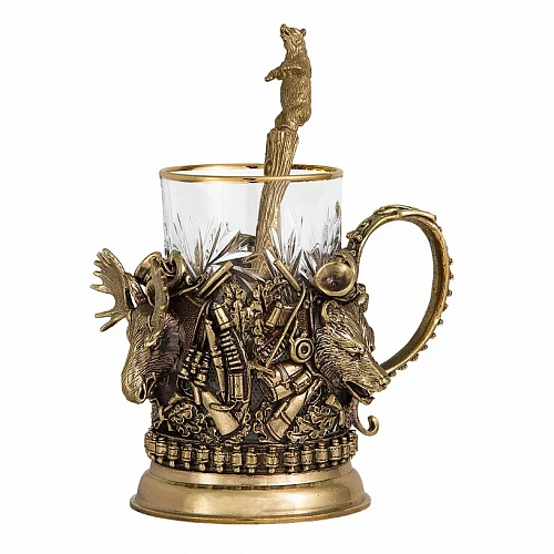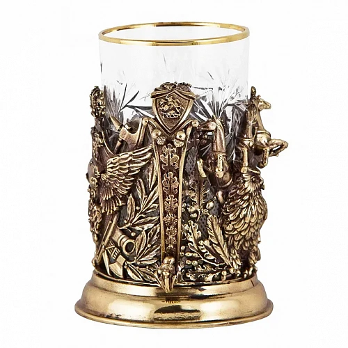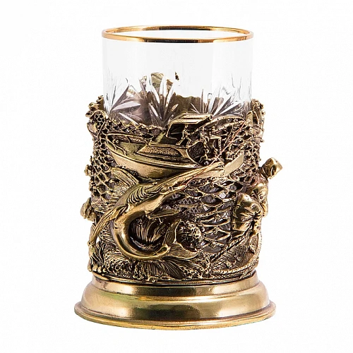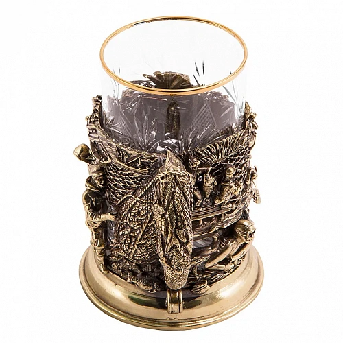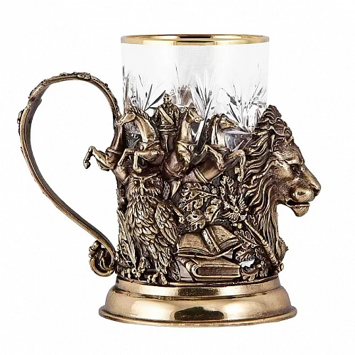 Подстаканник: бронза, точное объемное литье, стакан - хрусталь.