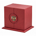 Футляр: кожа, дерево, бронзовая накладка. Размер - 215 х 165 х 175 мм.