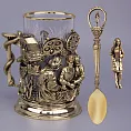 Подстаканник: бронза. Мастерами художественного литья удалость с высокой степенью детализации изобразить: хирургов во время операции, спасенного благодарного пациента при выписке, карету "Скорой помощи", хирургические инструменты, символ медицины "Чаши со змеёй", символ жизни и благодарности "Сердце на ладонях" и много других деталей, позволяющих внутри себя "прокрутить фильм" о спасении хирургами жизни и здоровья людей.