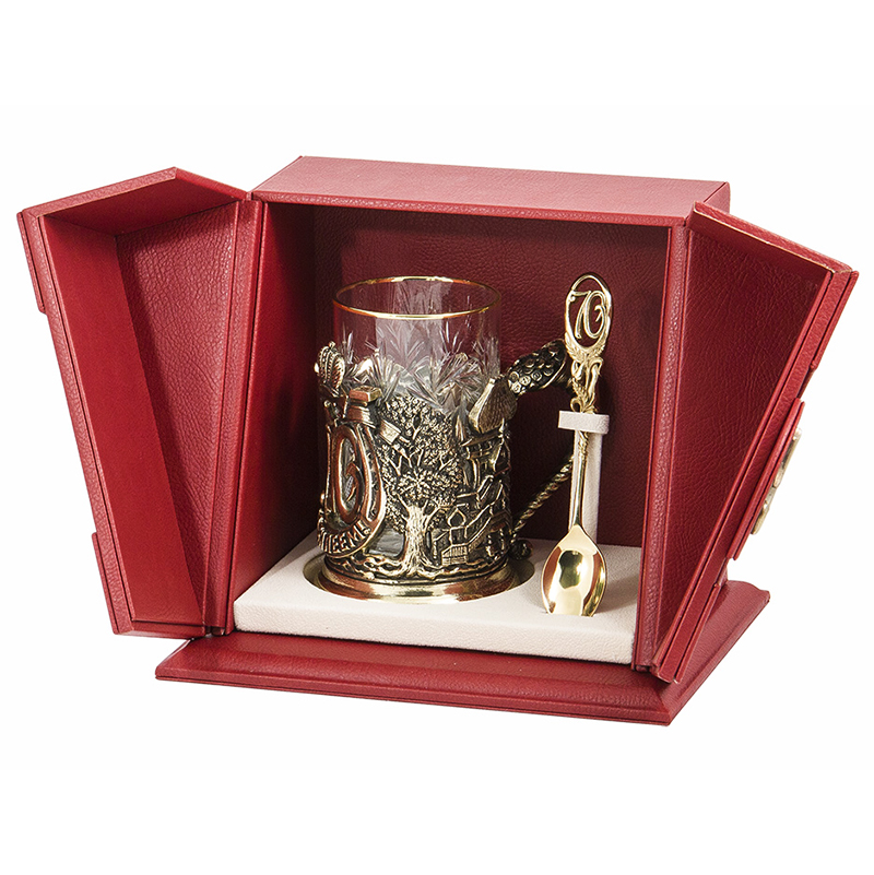 На подстаканнике в бронзе вылиты все эти символы: дом, дерево, парусник, заснеженные вершины, подкова — удача, рог изобилия — богатство и процветание. При дарении такого подарка-символа у Вас уже есть замечательный тост-пожелание, который не оставит равнодушным юбиляра.
