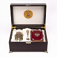 на внутренней крышке футляра методом лазерной гравировки или цветной УФ-печати.