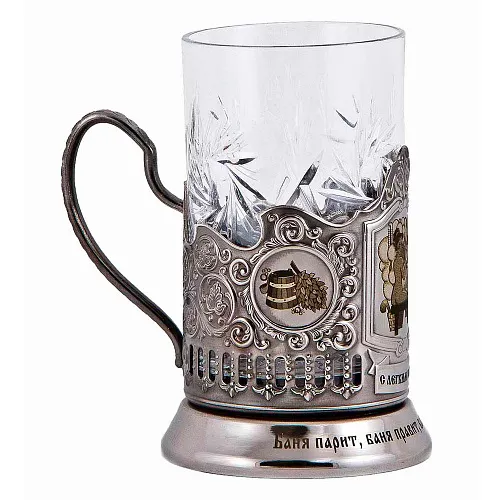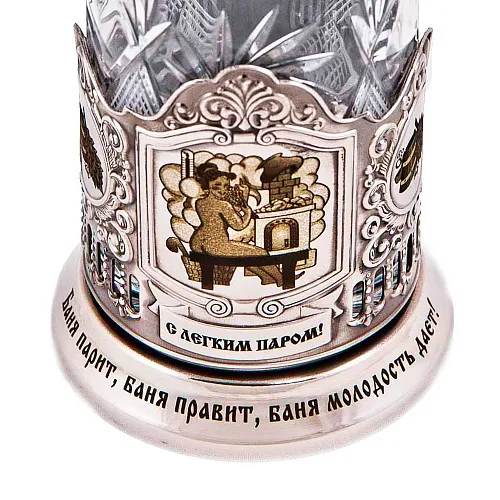 Материал подстаканника: никелированная латунь с позолочением 0,075 мк, лазерная гравировка.