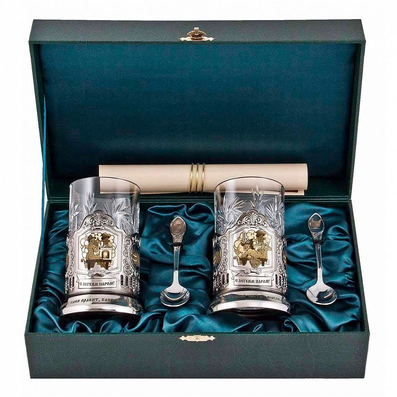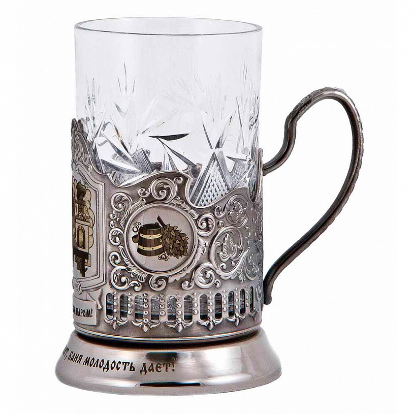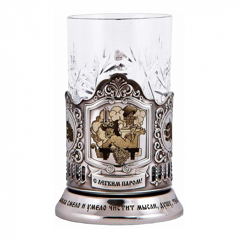 Материал подстаканника: никелированная латунь с позолочением 0,075 мк, лазерная гравировка.