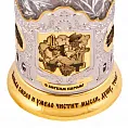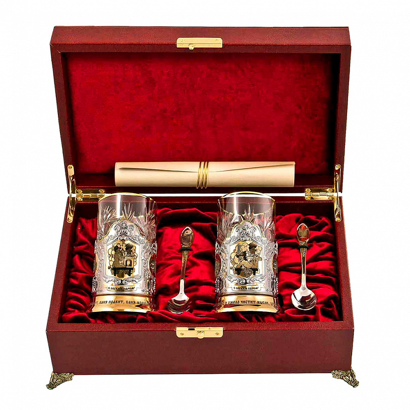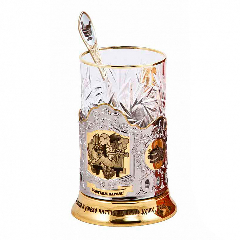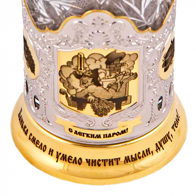 Материал подстаканника: никелированная латунь с позолочением 0,075 мк, лазерная гравировка.