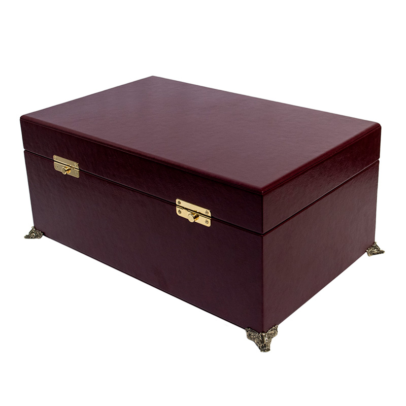 Футляр: Кожа, дерево, бронзовая фурнитура, ложемент - поролон, бежевый шёлк.