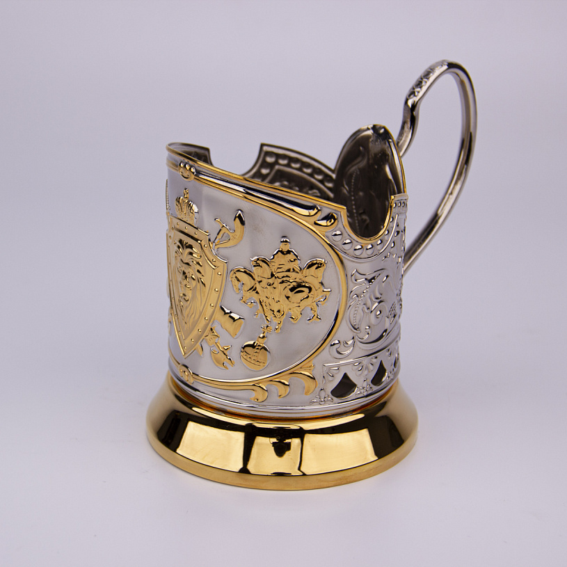 Материал подстаканника: никелированная латунь с золочением 0,075 мк, штамп.