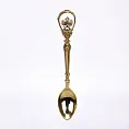 В правой руке держит меч, в левой — щит, укрывающий корону, скипетр и державу.