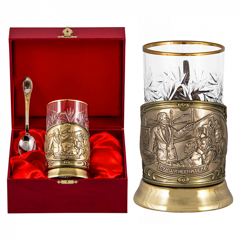 Подстаканник с ложкой "Лучший учитель" мужчина