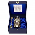 На подстаканнике в бронзе вылиты все эти символы - дом, дерево, парусник, заснеженные вершины, подкова - удача, рог изобилия - богатство и процветание. При дарении такого подарка-символа, у Вас уже есть замечательный тост-пожелание, который не оставит равнодушным юбиляра.