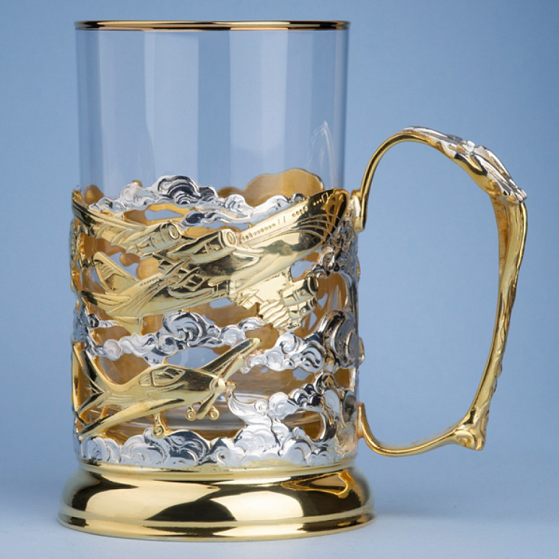 Подстаканник в футляре "Авиация" — это изысканное сочетание элегантности и тематического шика, воплощение роскоши и стиля. Изделие выполнено с использованием техник серебрения и золочения, что придает ему благородный блеск и подчеркивает его уникальный статус.
