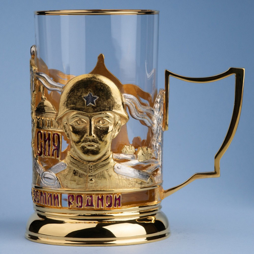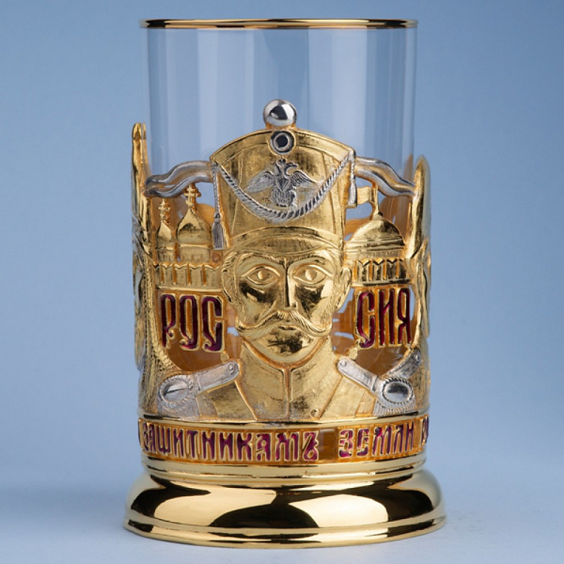 Подстаканник в футляре "Россия, Слава защитникам земли родной" (серебрение, золочение)