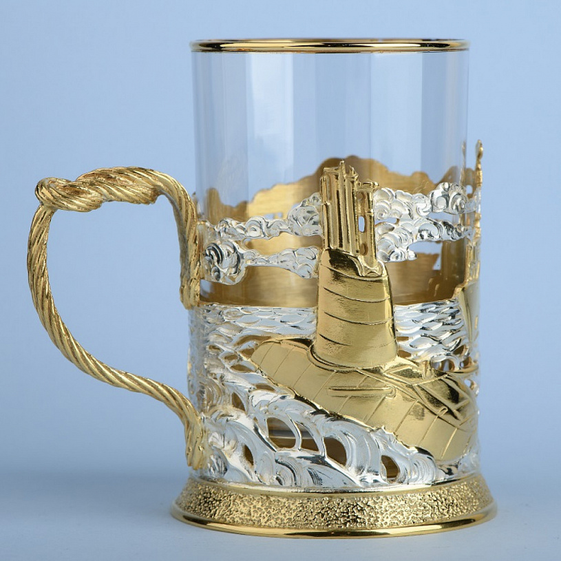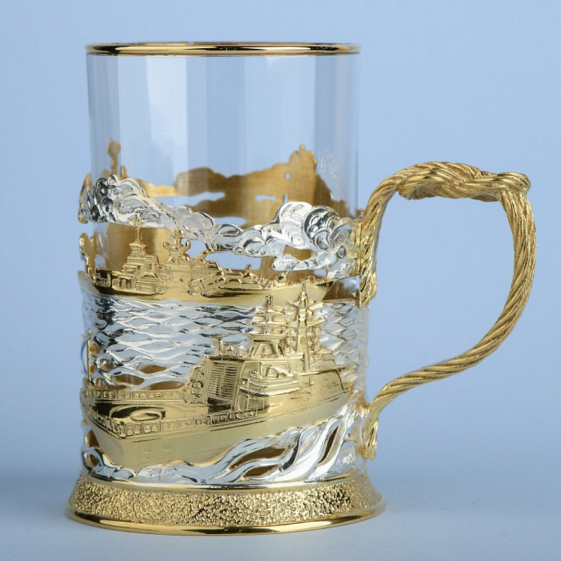 Подстаканник в футляре "ВМФ РФ" (серебрение, золочение)