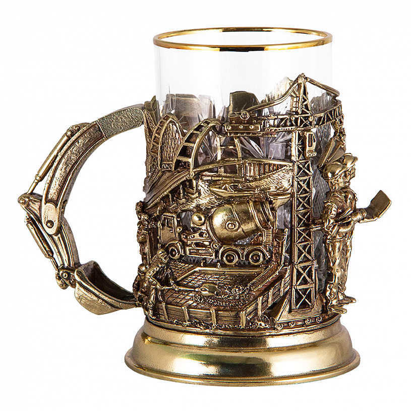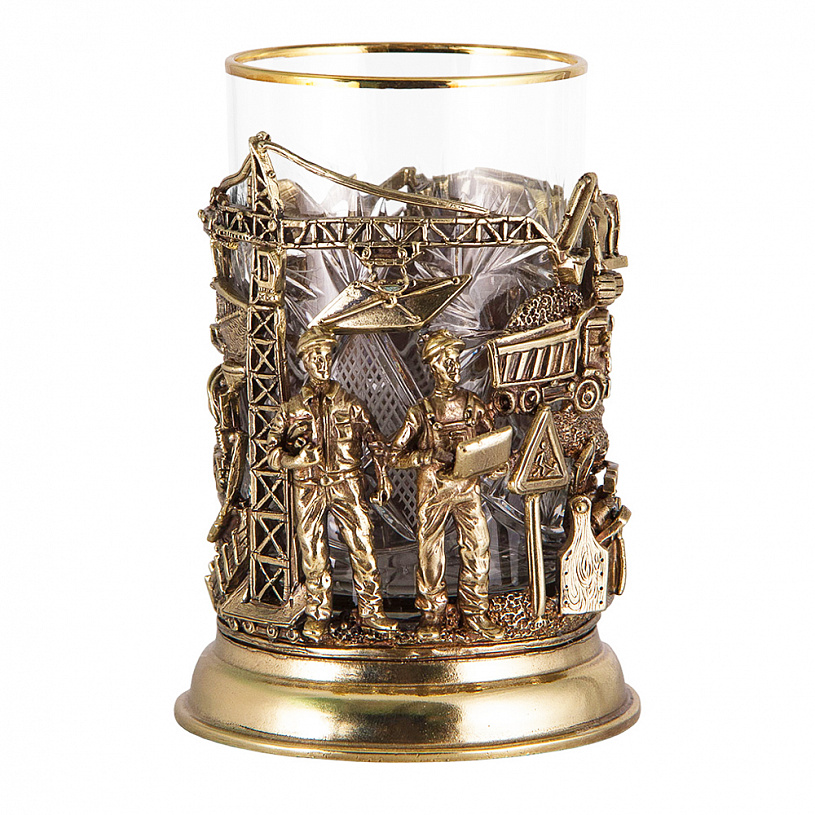 Подстаканник «Строители» - прекрасный подарок для представителя любой из многочисленных специальностей этой древней и мирной профессии: здесь каждый найдет символическое изображение своей строительной специализации. Конструктор и инженер, штукатур и крановщик, водитель бульдозера и сварщик – все они, талантливые и трудолюбивые труженики, здесь так же рядом, как и на стройке, где бок о бок ежедневно совершают свой трудовой созидательный подвиг: чертят, возят, носят, месят, режут, варят, роют, крепят. Всем управляет «бог» стройки – прораб, который только что вышел из бытовки и зорким, наметанным взглядом осматривает свои владения.