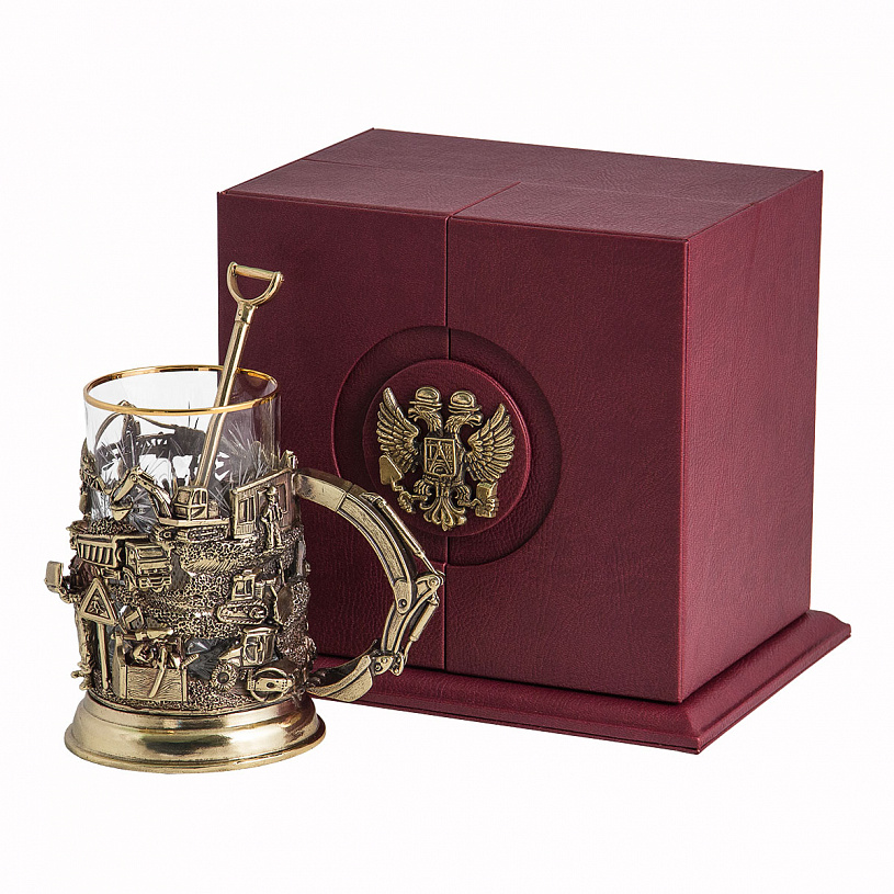 Материал: Подстаканник – точное объемное литье из бронзы, уникальная ручная работа. Стакан – хрусталь с золотой отводкой.