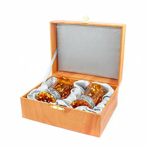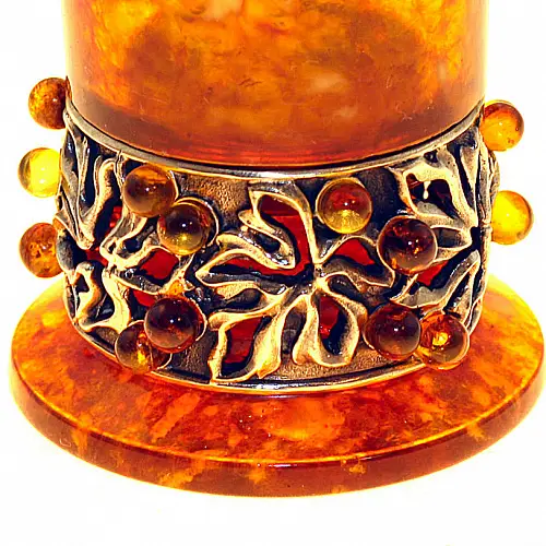 Непревзойденная и элегантная работа по изготовлению предметов посуды в состав которой входит камня янтарь, который надает приборам медовый оттенок. Хоть камень является и декоративным подходит для изготовления не только ювелирных изделий. Купив себе или подарив кому то такие изделия, можно быть уверенным что такой подарок будет оценен по достоинству.