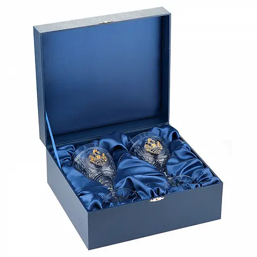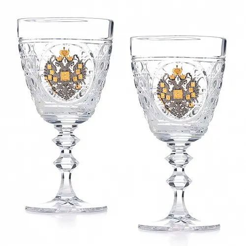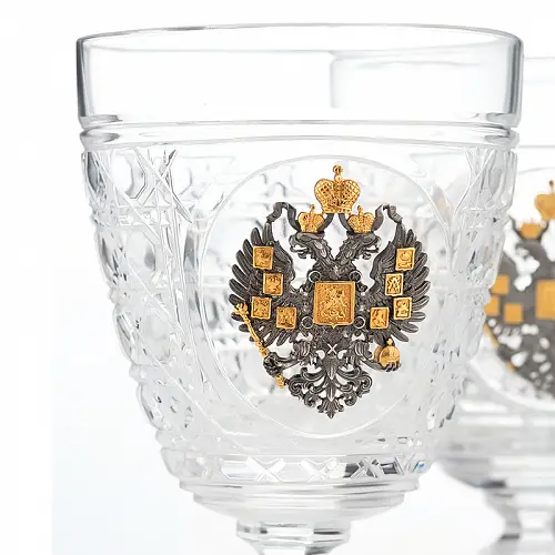 Каждый бокал украшен гербом царской России.