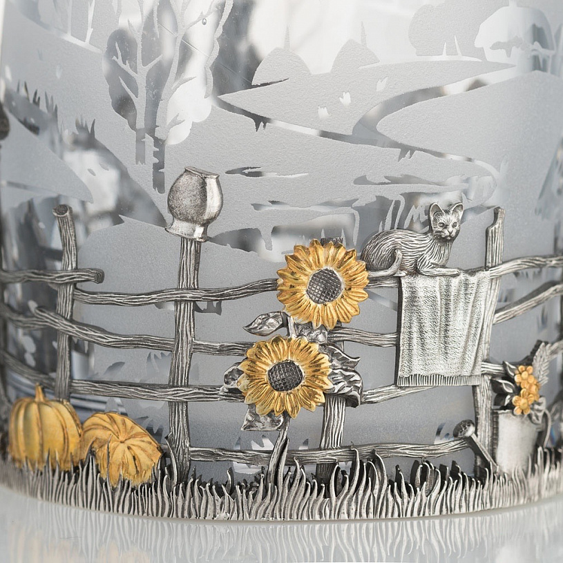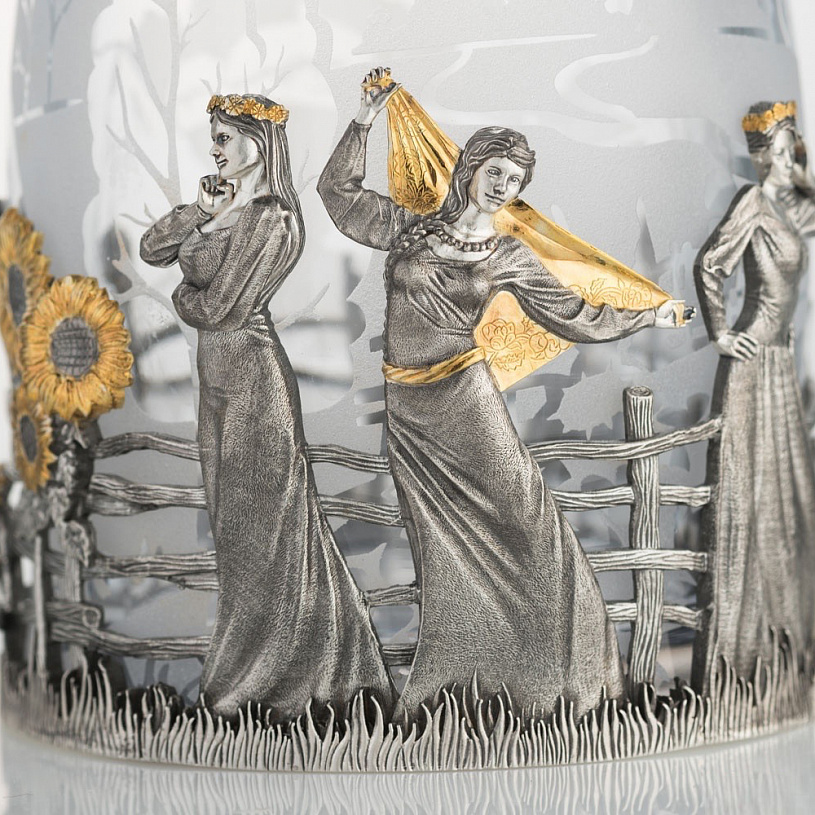 Графин из хрусталя с серебром выполнен по мотивам народной песни «Выйду на улицу, гляну на село, девчата гуляют, и мне весело». Графин получил первое место на ювелирном конкурсе в Москве в 2019 году.