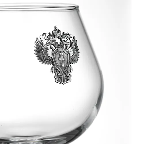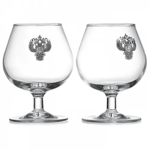 Каждый бокал украшен гербом царской России.