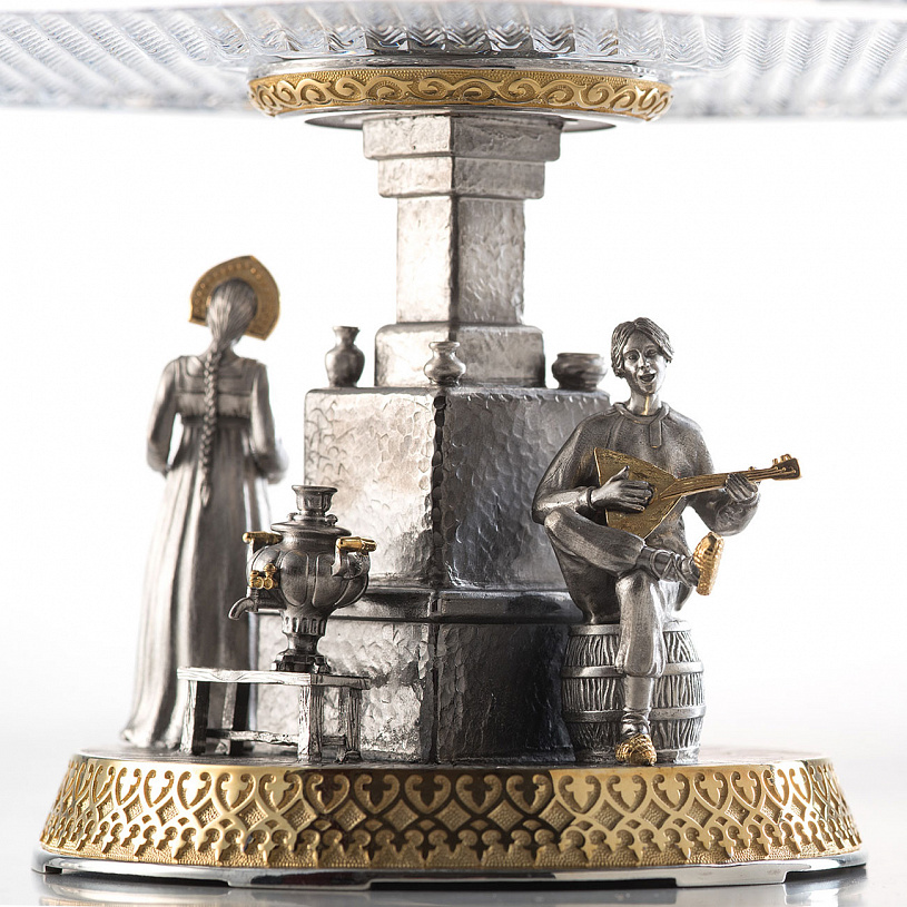 Блюдо для блинов «Русская печь» (серебро, хрусталь)