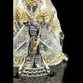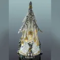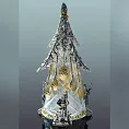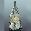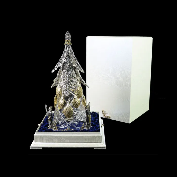 Подарочный набор по мотивам русских сказок выполнен из хрусталя и серебра 925 пробы. Центром композиции служит хрустальная сказочная ель с украшенными золотыми шишками. При близком рассмотрении мы увидим, что это ложечки. Охраняют всю сказочную идиллию царский караул в кафтанах. Верхушку ёлки украшают геотермальные изумруды. Данная композиция станет функциональным и ярким подарком на Новый год.