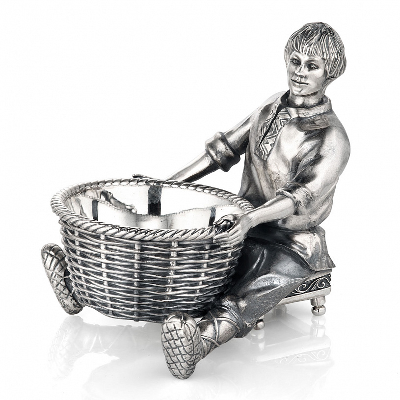 Серебряная подставка под яйцо "Корзинщик"