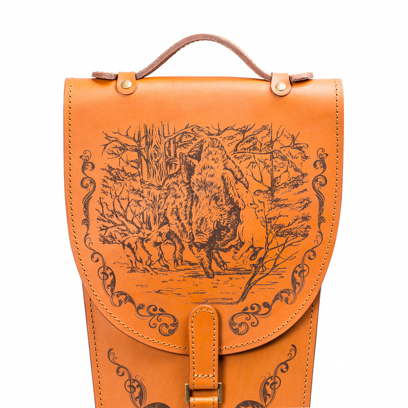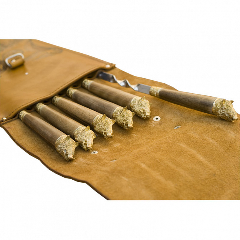 Шампура подарочные в колчане из натуральной кожи "Охота на кабана"